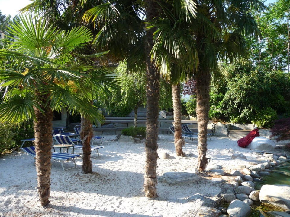 Der Sandstrand liegt direkt am Natur-Freibad des Hotels
