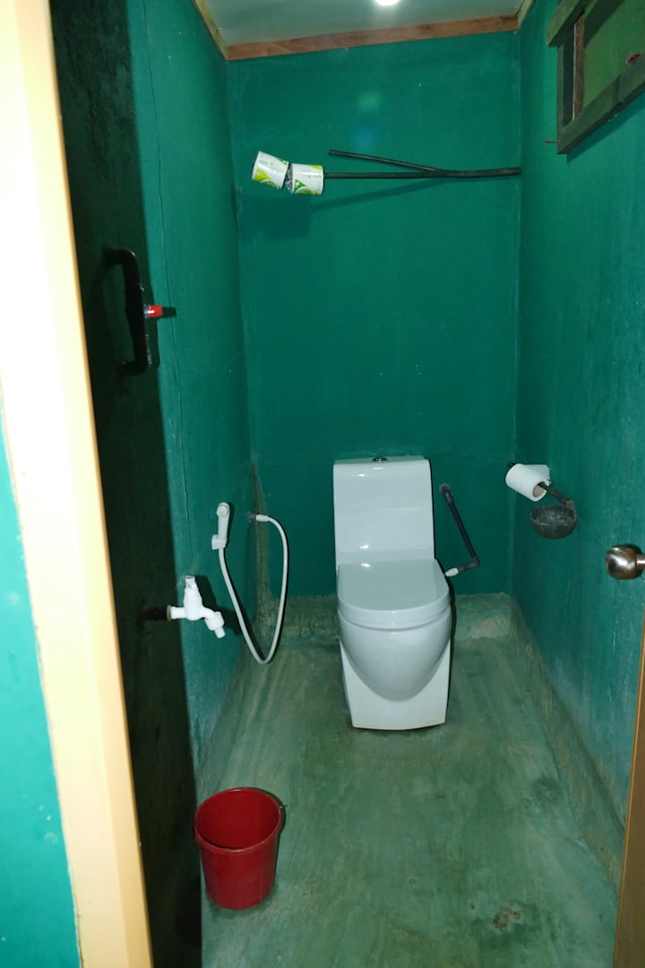 Toilette und Dusche im Lake View Tree House mit Seeblick