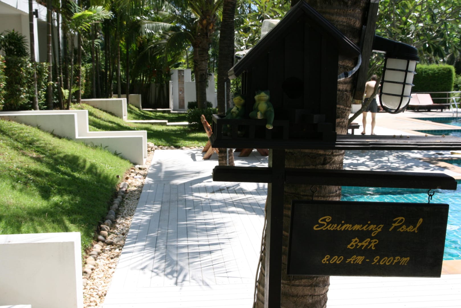 Blick vom Restaurant zum Pool