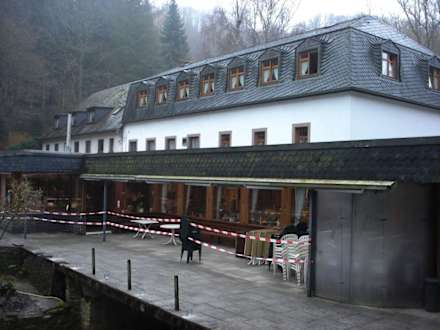 ....wenn man dann an der Kleinen Kyll Richtung Meerfeld geht. Die Terrasse wird aktuell umgestaltet.