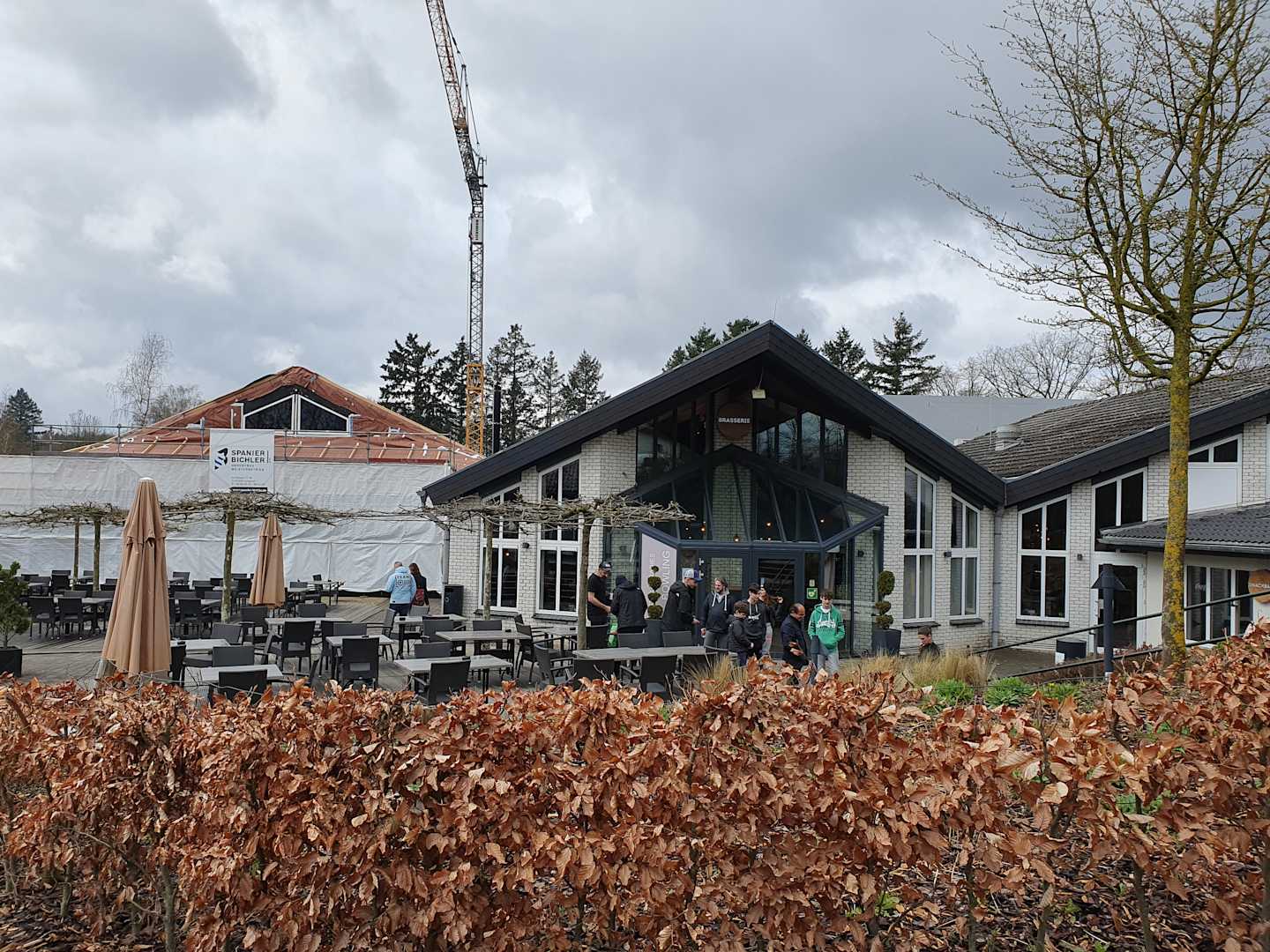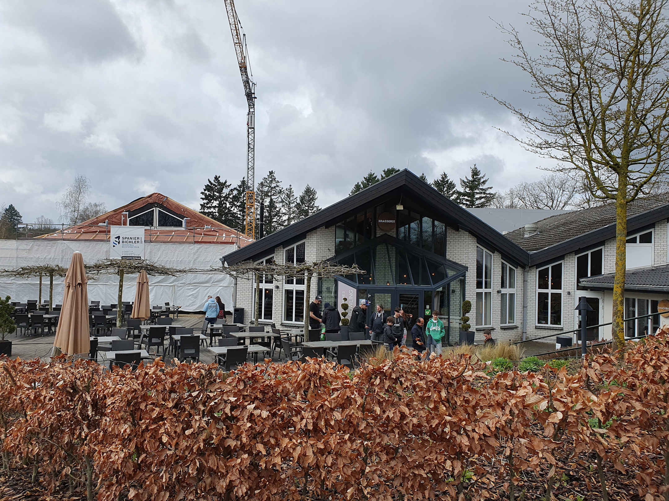 Außenterrasse und Eingang zum Restaurant und Indoor Spieleparadies