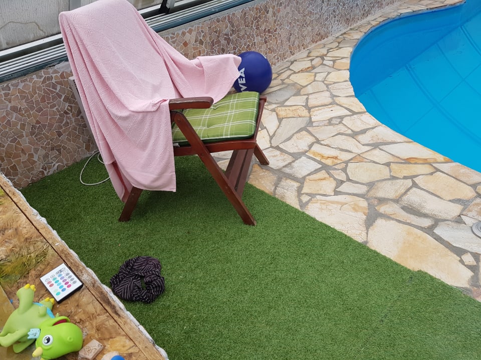 Im Poolbereich. Überall lag etwas rum, obwohl keiner am Pool war.