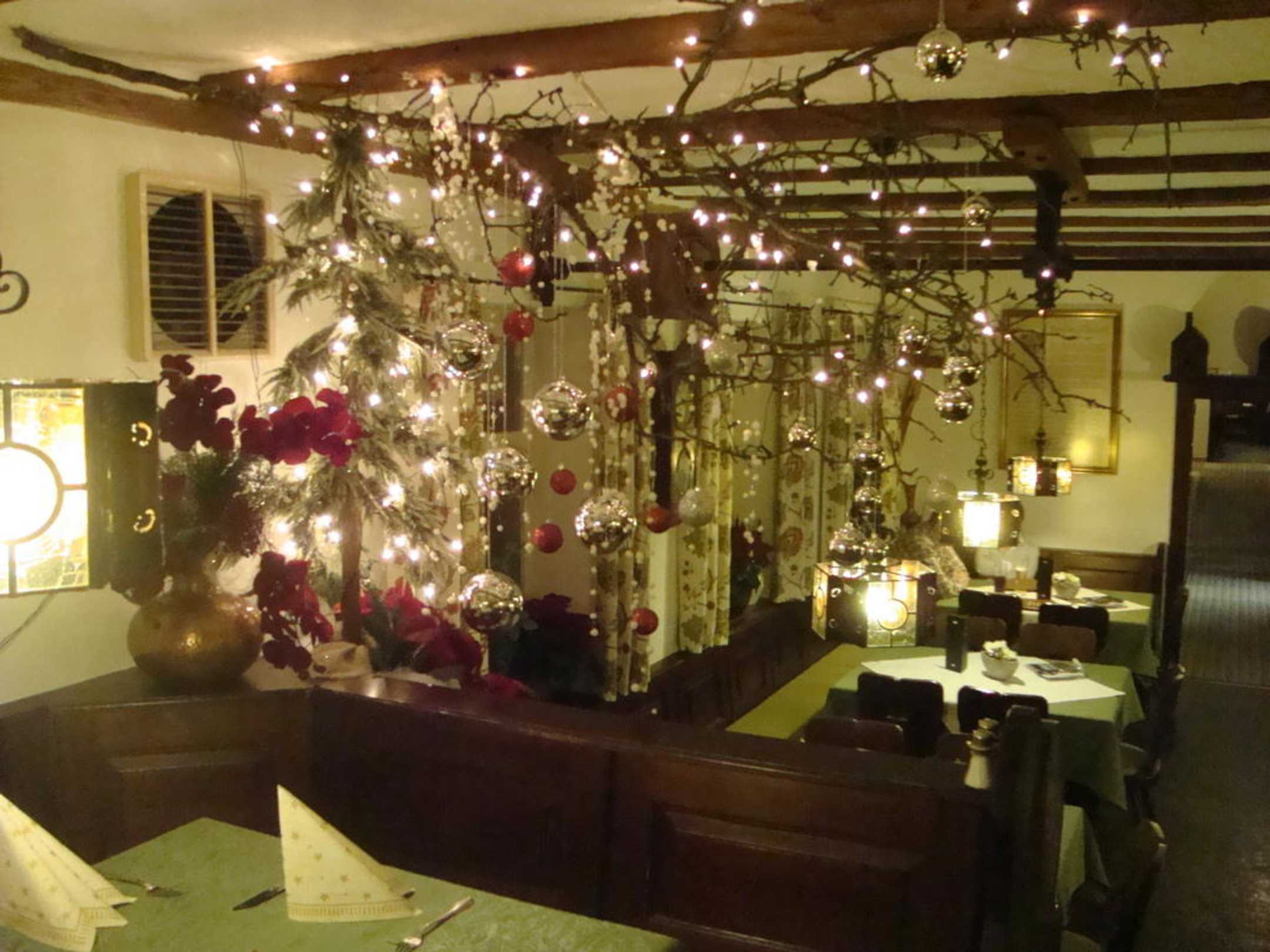 Blick ins weihnachtlich geschmückte Restaurant