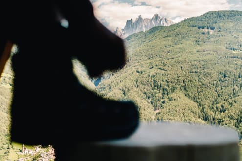 Ausblick vom Balkon auf die Dolomiten