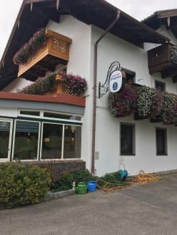 „Der Sägwirt“ im Herbst, auch noch mit dem „sommerlichen“ Blumenschmuck