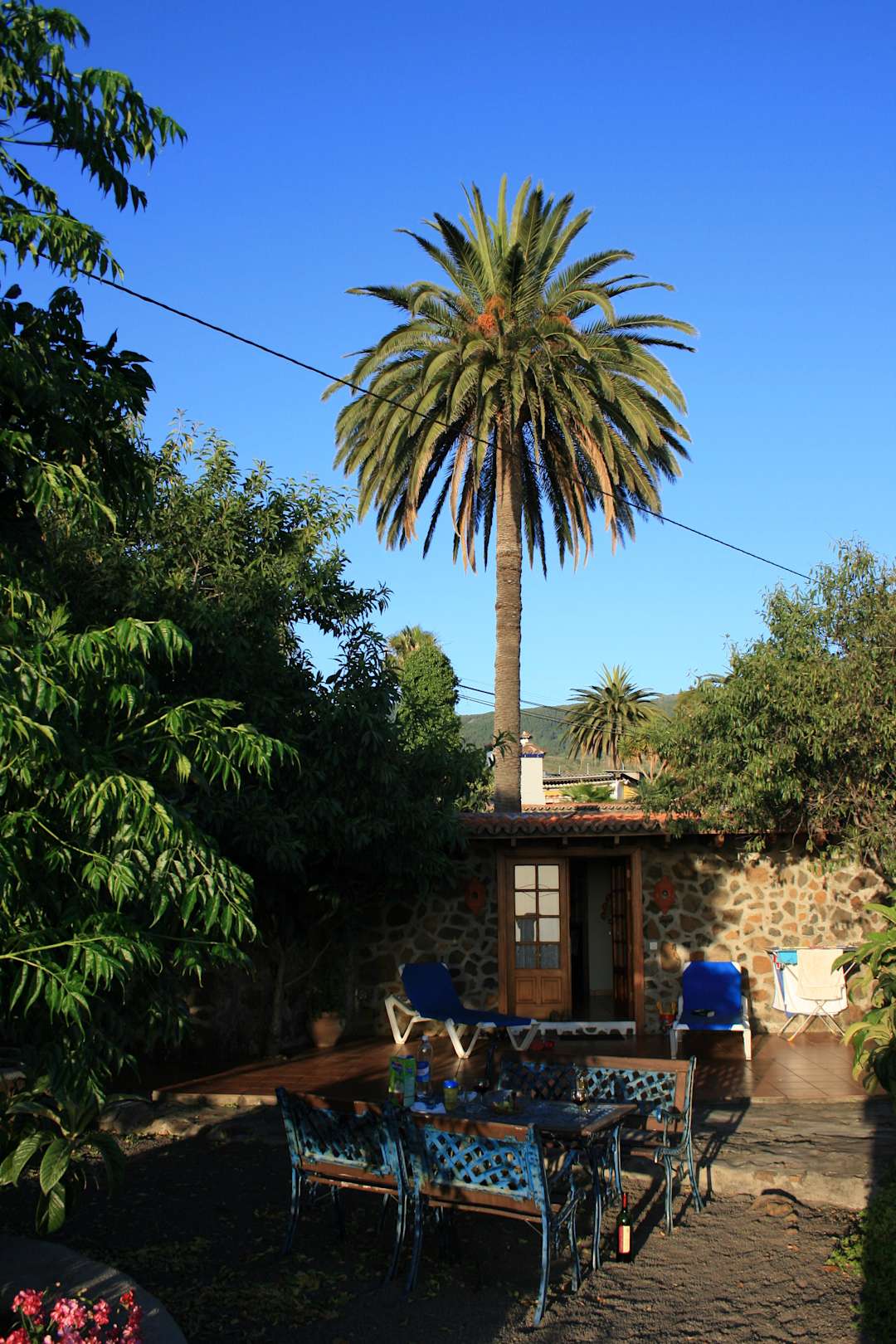 Blick zur Königspalme hinter der Casa