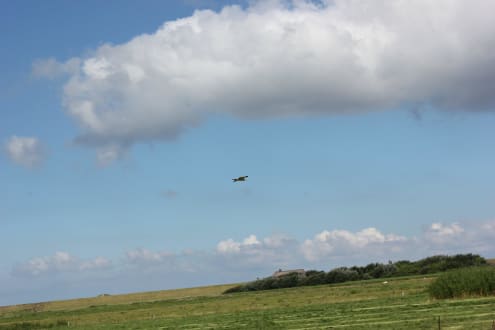 Blick vom Balkon zum Deich