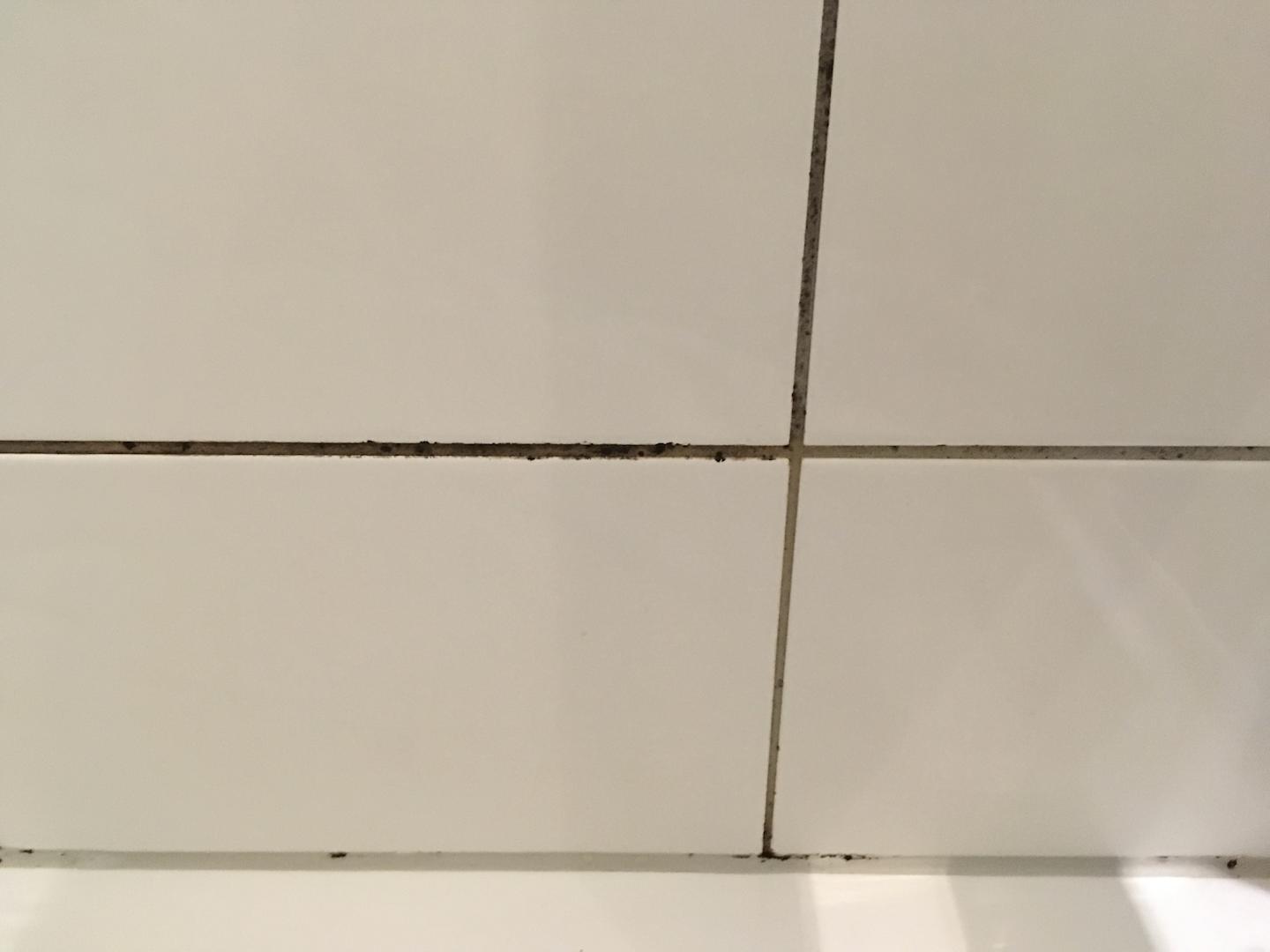 Spak-Flecken in der Dusche bis in Brusthöhe.