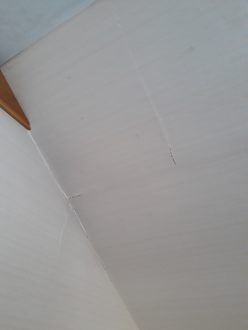 Risse auf der Decke über dem Bett