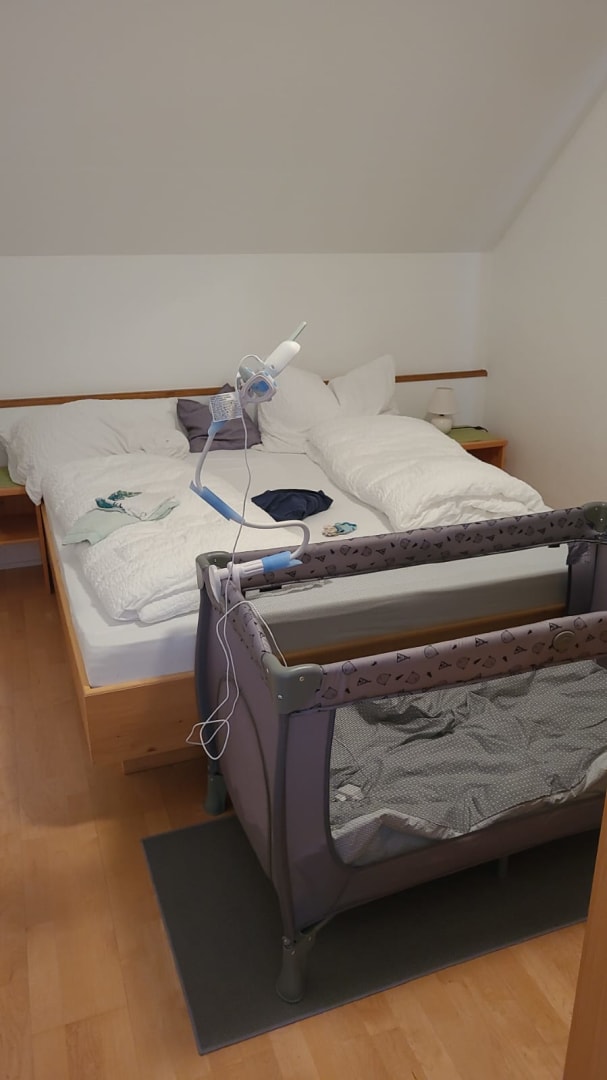 Schlafzimmer mit Beistellbett