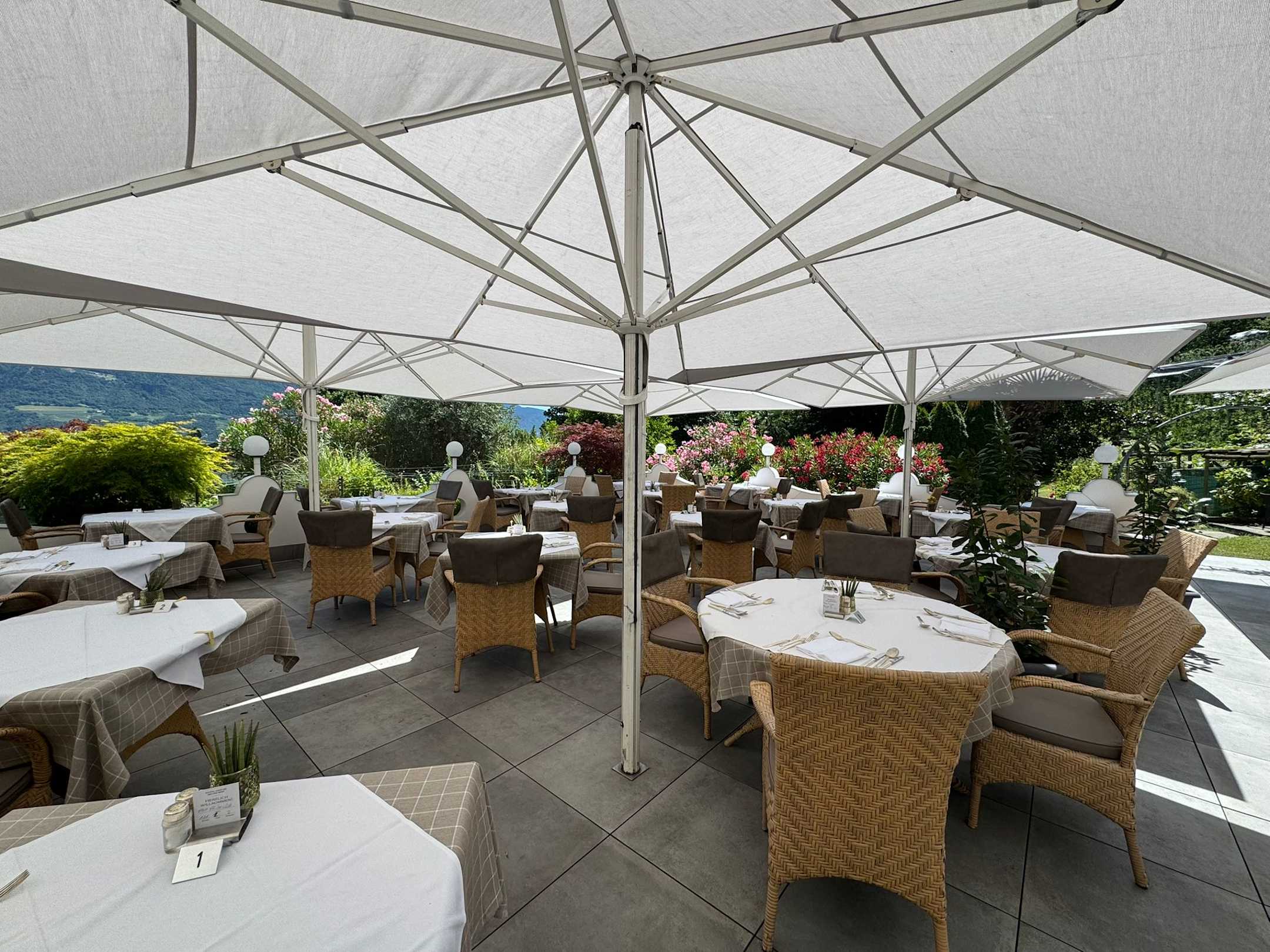 Terrasse wo bei schönem Wetter gegessen wird