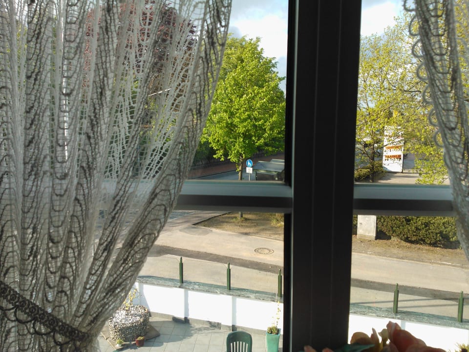 Blick auf Terrasse und Strasse vom Zimmer