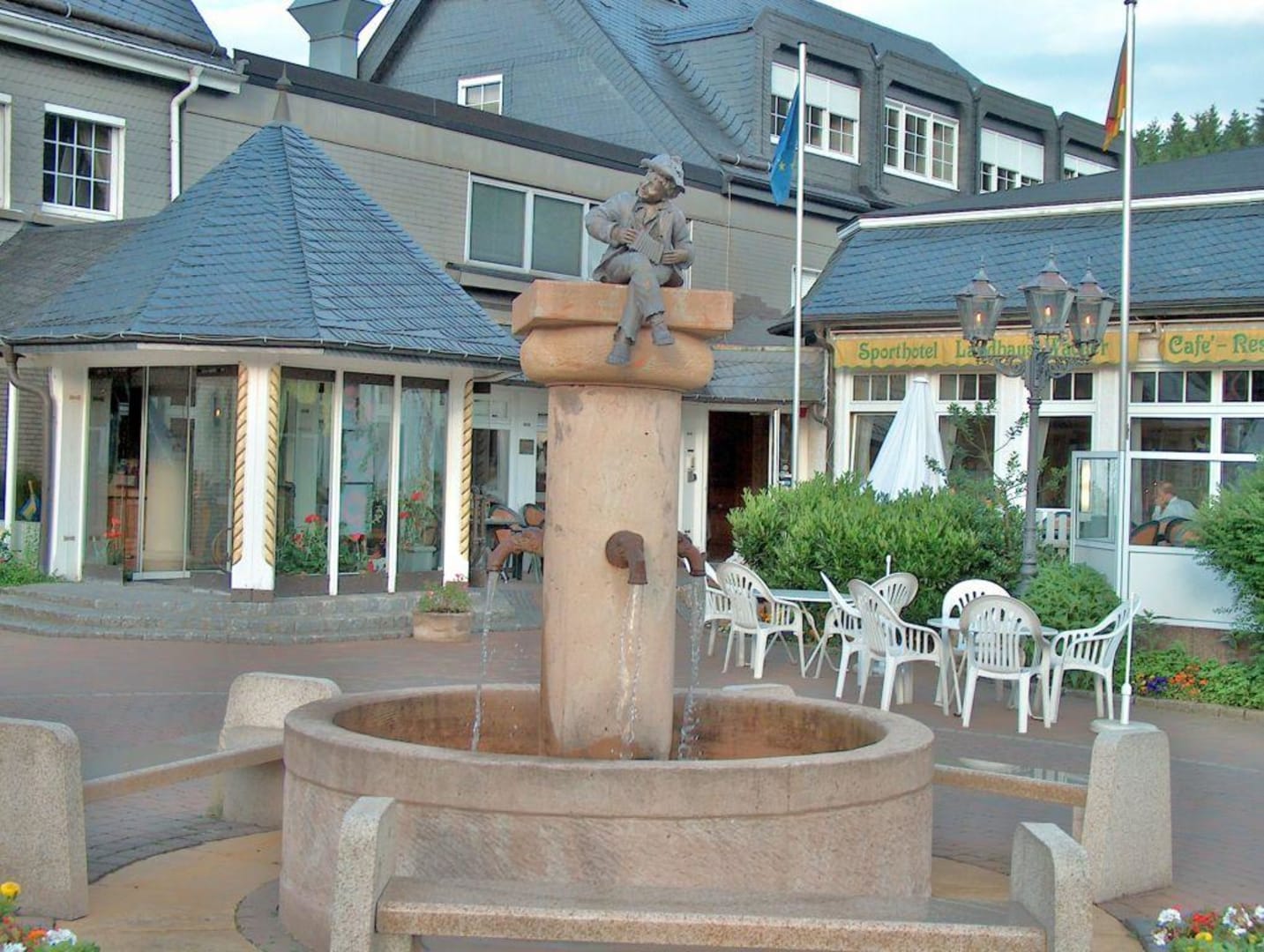 Landhaus Wacker AußenansichtAußenansicht von Landhaus Wacker in Wenden-Brün im Sauerland mit dem Brunnen