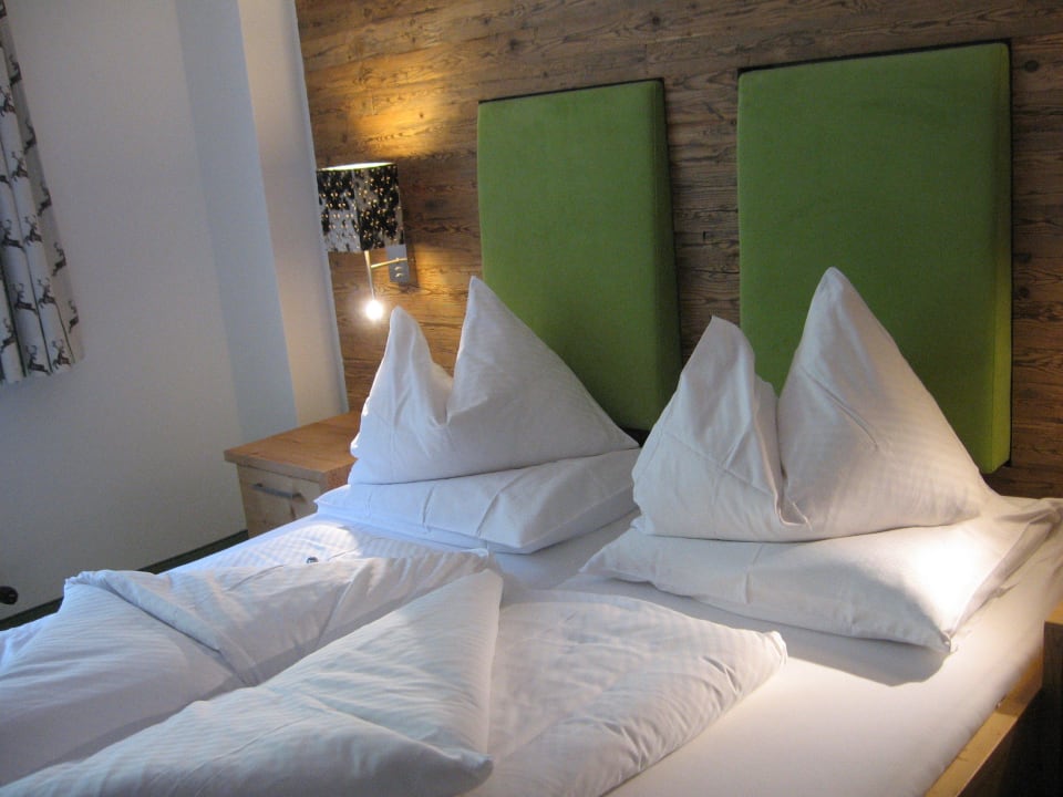 Schlafbereichso kunstvoll wurden täglich die Betten gemacht. Am ersten Tag lag auch eine Praline auf jedem Kissen