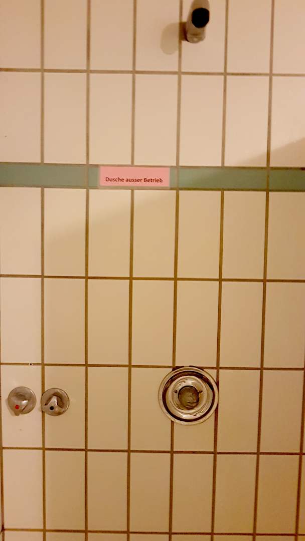 Eine von zwei Duschen im Umkleidebereich des Schwimmbades defekt !