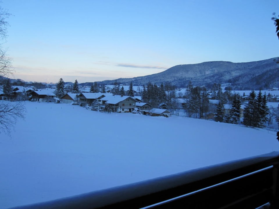 Abenddämmerung beobachtet aus Zimmer 8 vom Balkon aus. Blickrichtung zum Dorf.