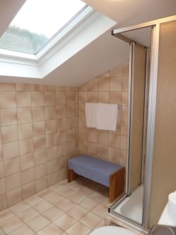 Dusche, Abstellplatz, blitzsaubere Handtücher