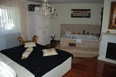 Zimmer Nr. 4 Schlafbereich mit Badewanne Luxussuite