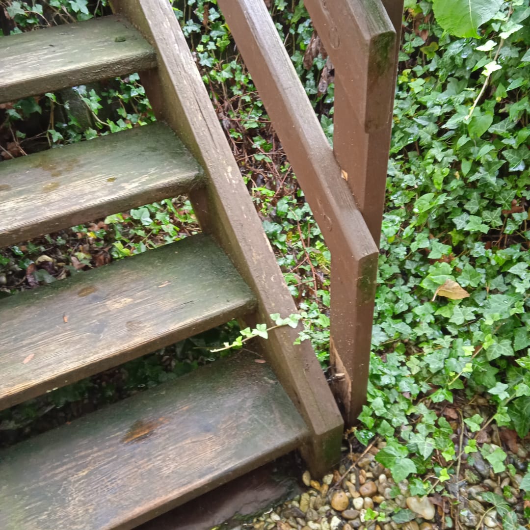 Defektes Geländer von Sauna in den Außenbereich.