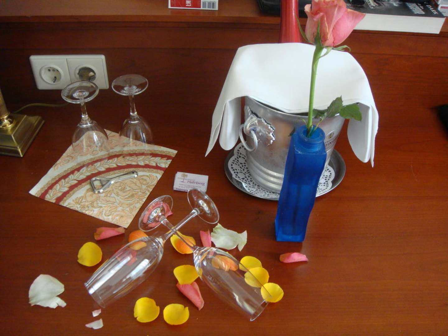 Sekt mit Rosenblätter