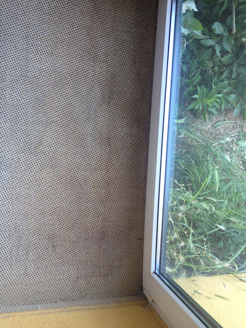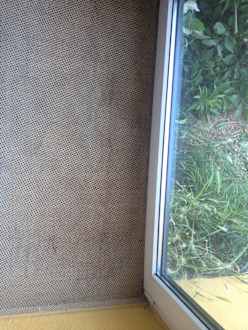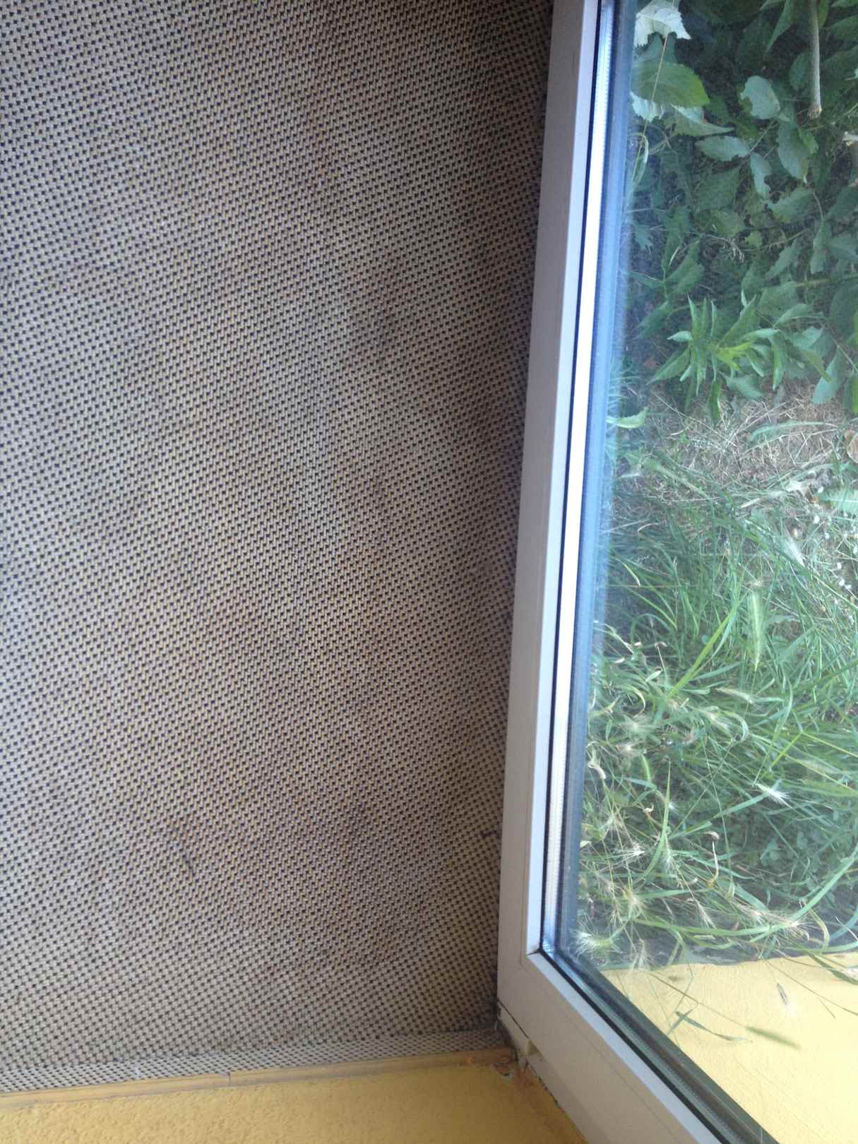 ZimmerTeppich vor der ungeschützten Balkontür. 1m Absatz nach unten ohne Balkon oder Terrasse. Sehr gefährlich auch für Kinder