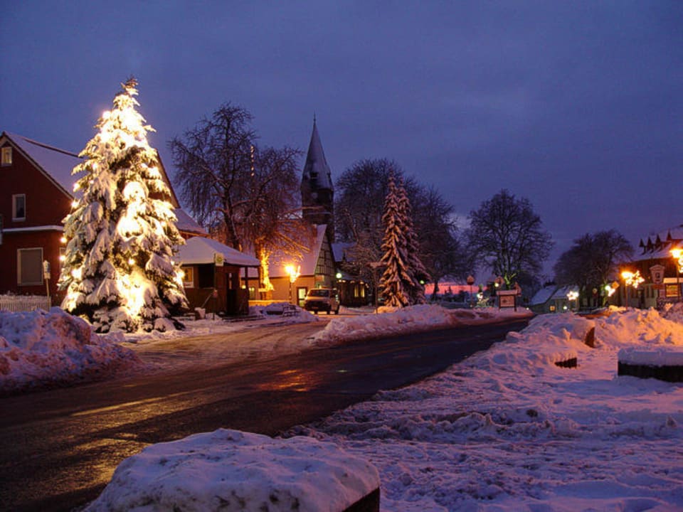 Beleuchtetes Friedrichsbrunn im Winter