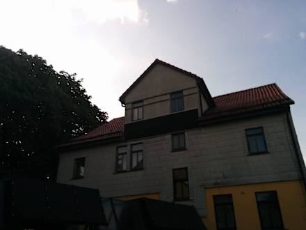 HotelhausFehlende Schindeln wurde nach Monaten immer noch nicht ersetzt.