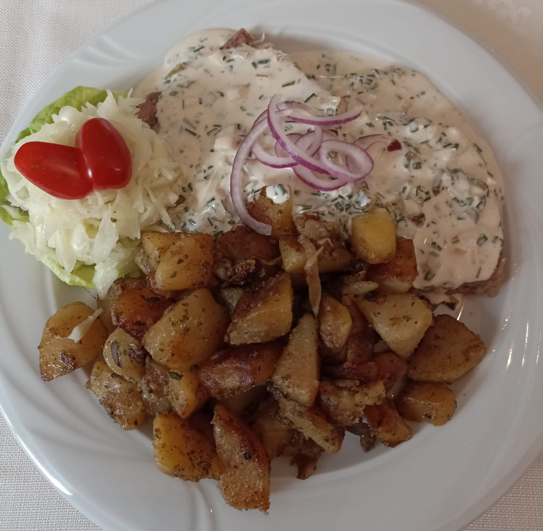 hausgemachte Sülze mit Bratkartoffeln und Remoulade