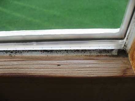 Alles in einem DZ für 142 € p.N. Nein, das ist kein Witz. So sah es um den Zustand der Balkontüre tatsächlich aus. Der Schimmelbesatz fand bei der Zimmerreinigung keine Beachtung.
