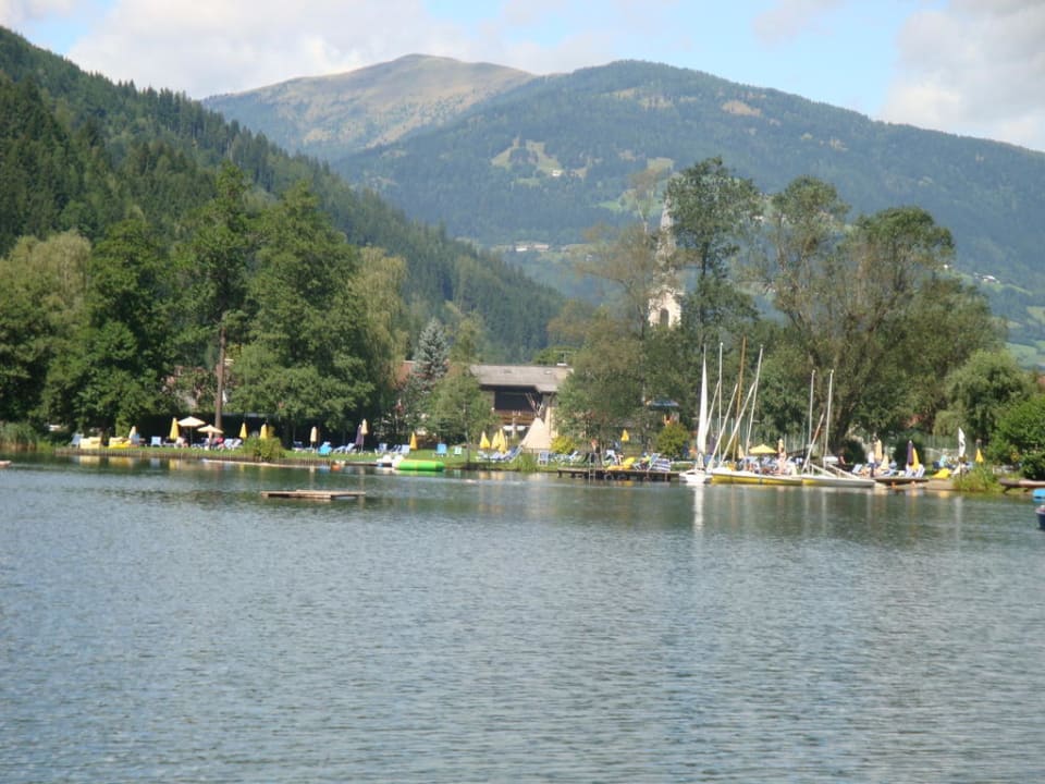 Blick von Strand auf Kirche