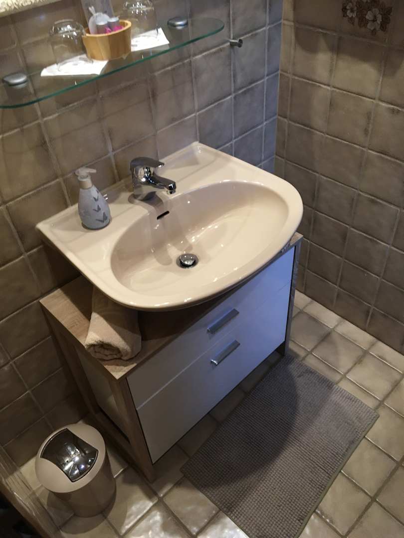 Das Waschbecken mit Miniablage in der Romberg-Kammer