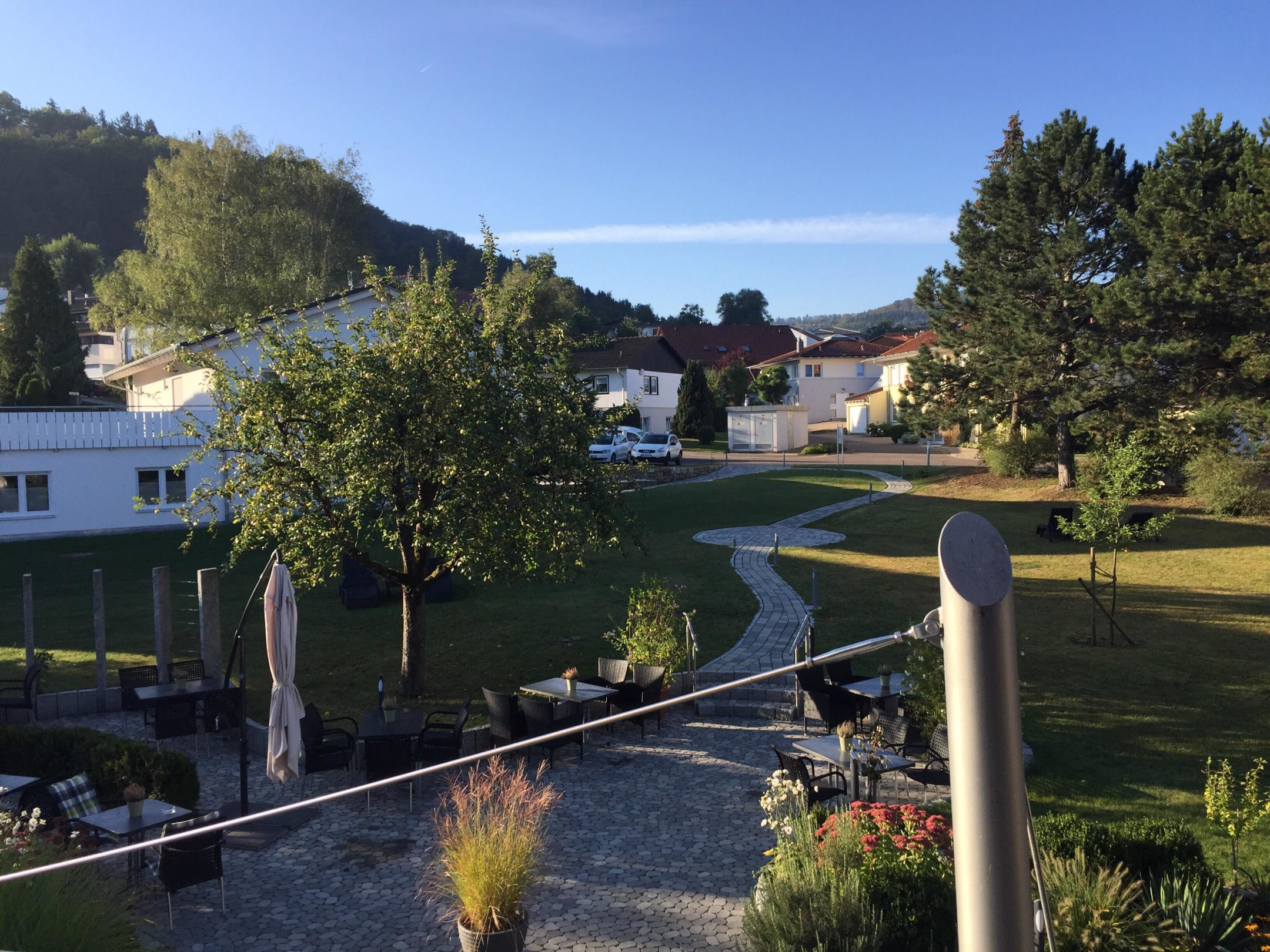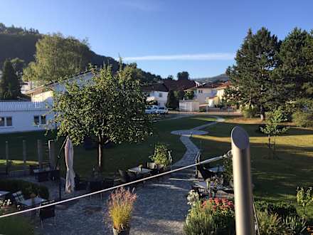 Blick vom Balkon auf Terrasse
