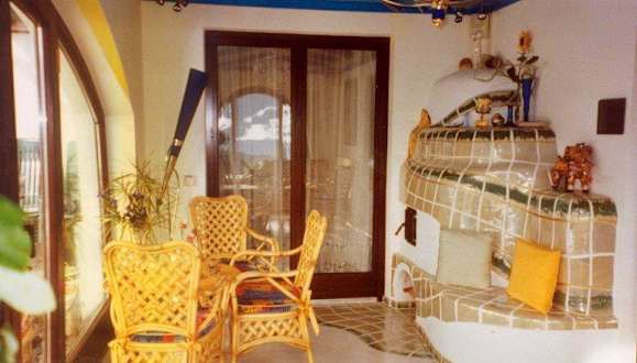 Wintergarten mit Kachelofen
