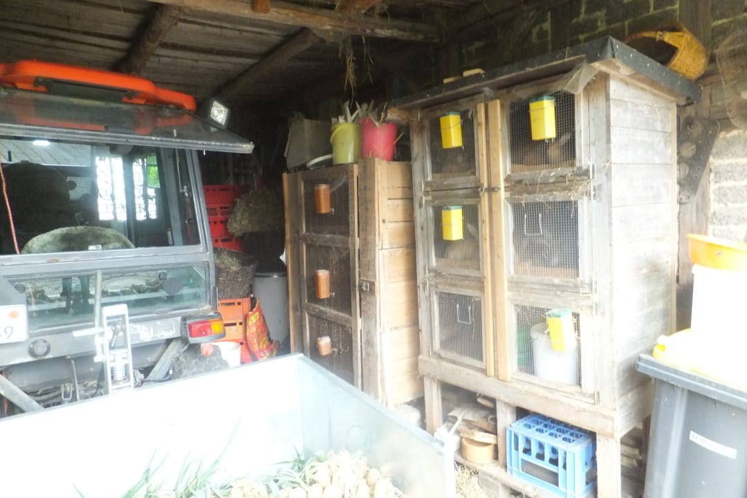 AußenansichtDie "Streicheltiere" (landen in der Küche) in engen Buchten zwischen Landwirtschaftsgeräten - keine schöne Urlaubserfahrung