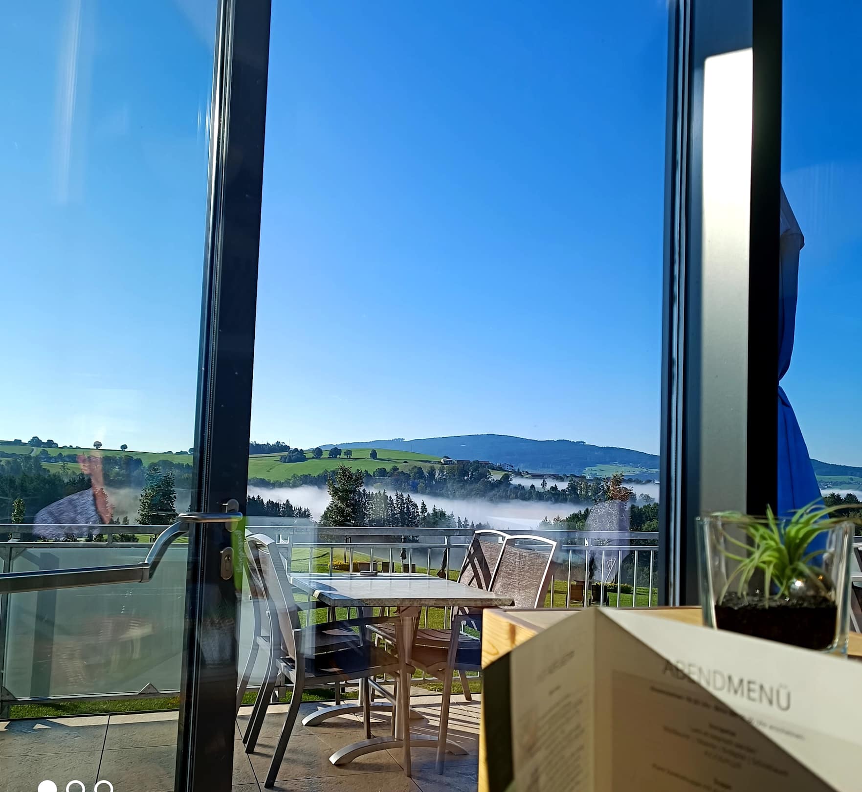 Unser Blick vom Frühstücksraum/Speisesaal