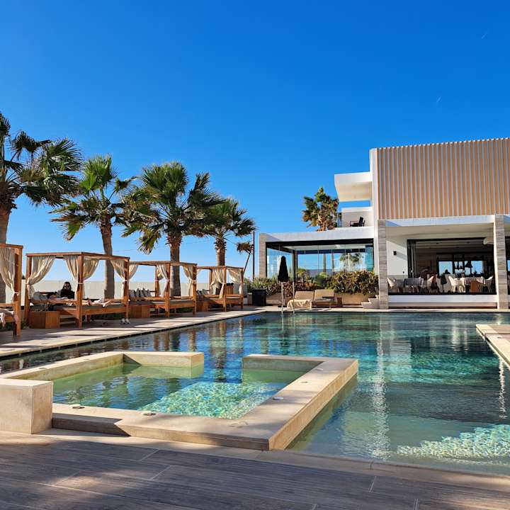 ruhiger großer Pool mit kostenlosen Bali-Betten