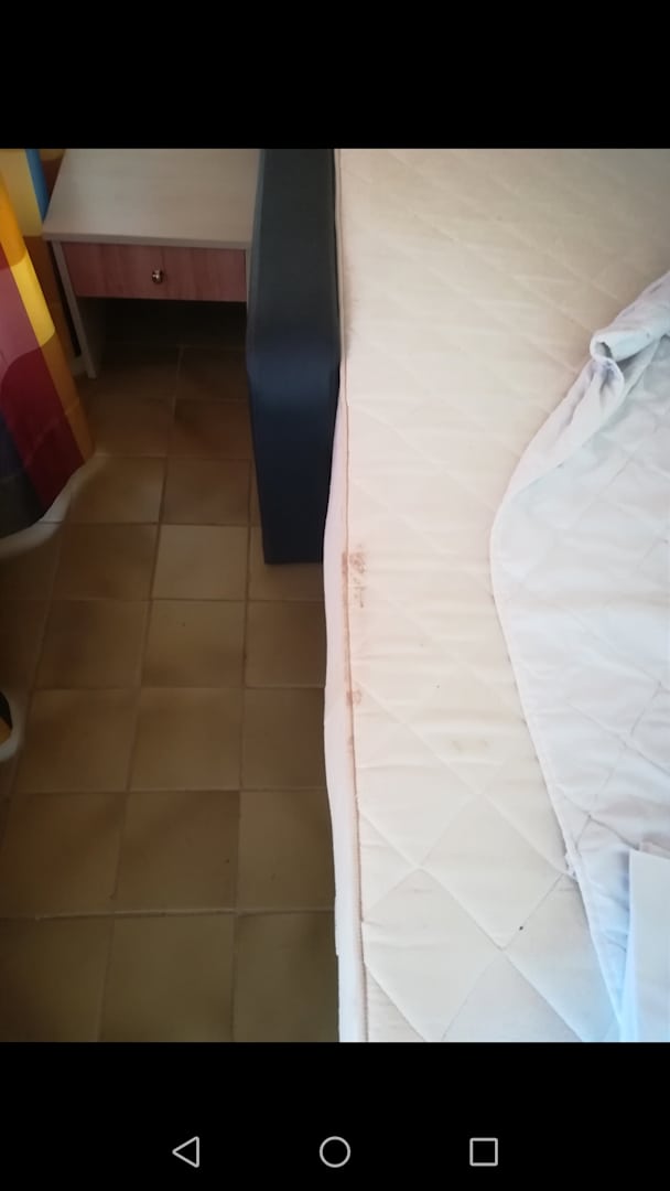 ZimmerVerdreckt und voll mit Spermaspuren das Bett. Muffiger Geruch im Zimmer und der Boden klebrig. Der Kühlschrank und Brause voll Schimmel.