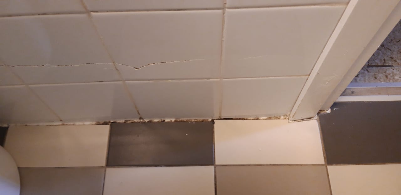 Schimmel überall im Bad. Kaputte Fliesen soweit das Auge reicht