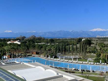 Blick vom Balkon zum beheizten Außenpool