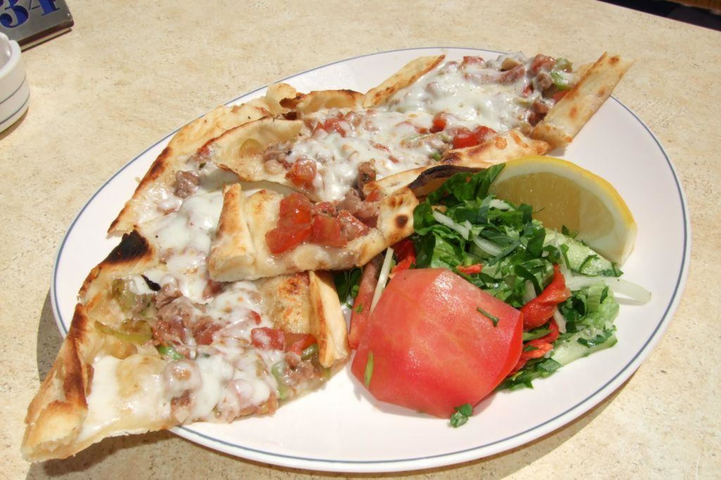 Pide - türkische SpezialitätMittags im a la card Snack-Restaurant, wahlweise mit Rindfleisch und/oder Käse
