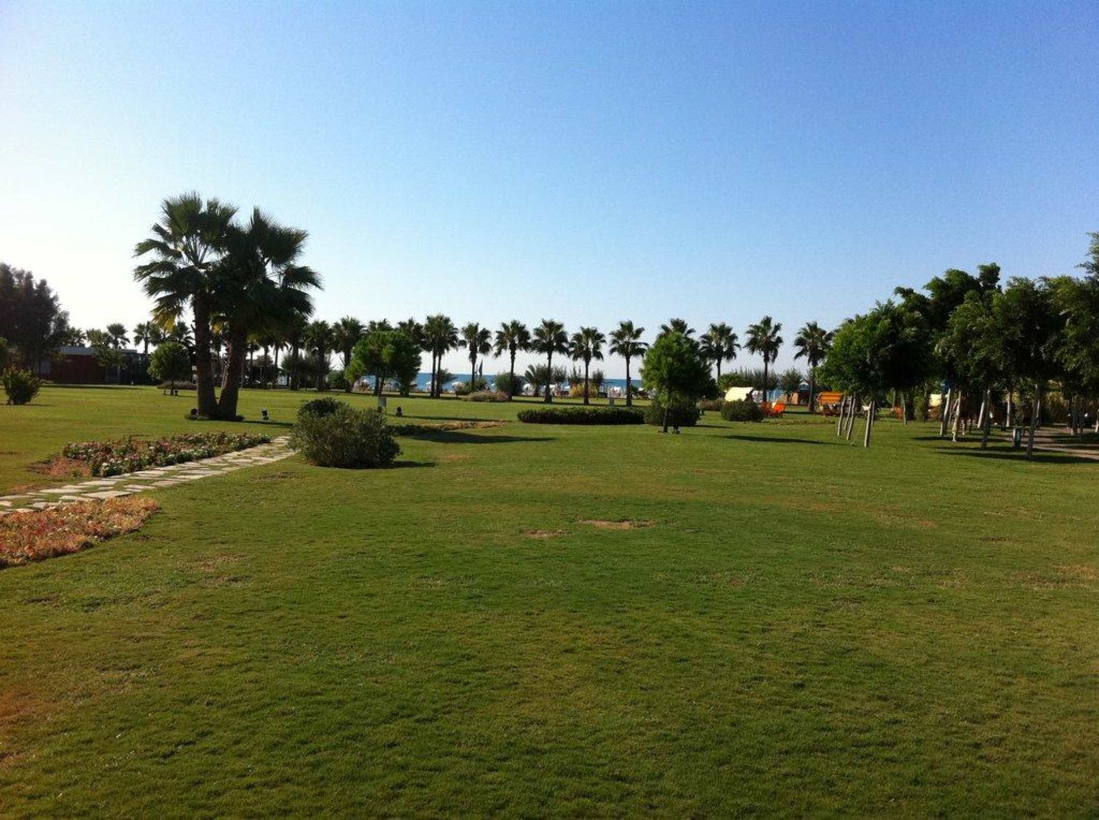 Parkwunderbarer gepflegter Garten, sauber, schöne Blumen und Bäume, und alles ist einfach so schön arrangiert mit viel viel Platz