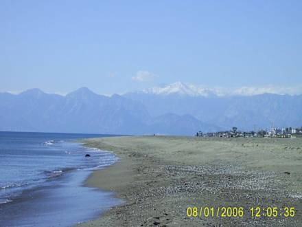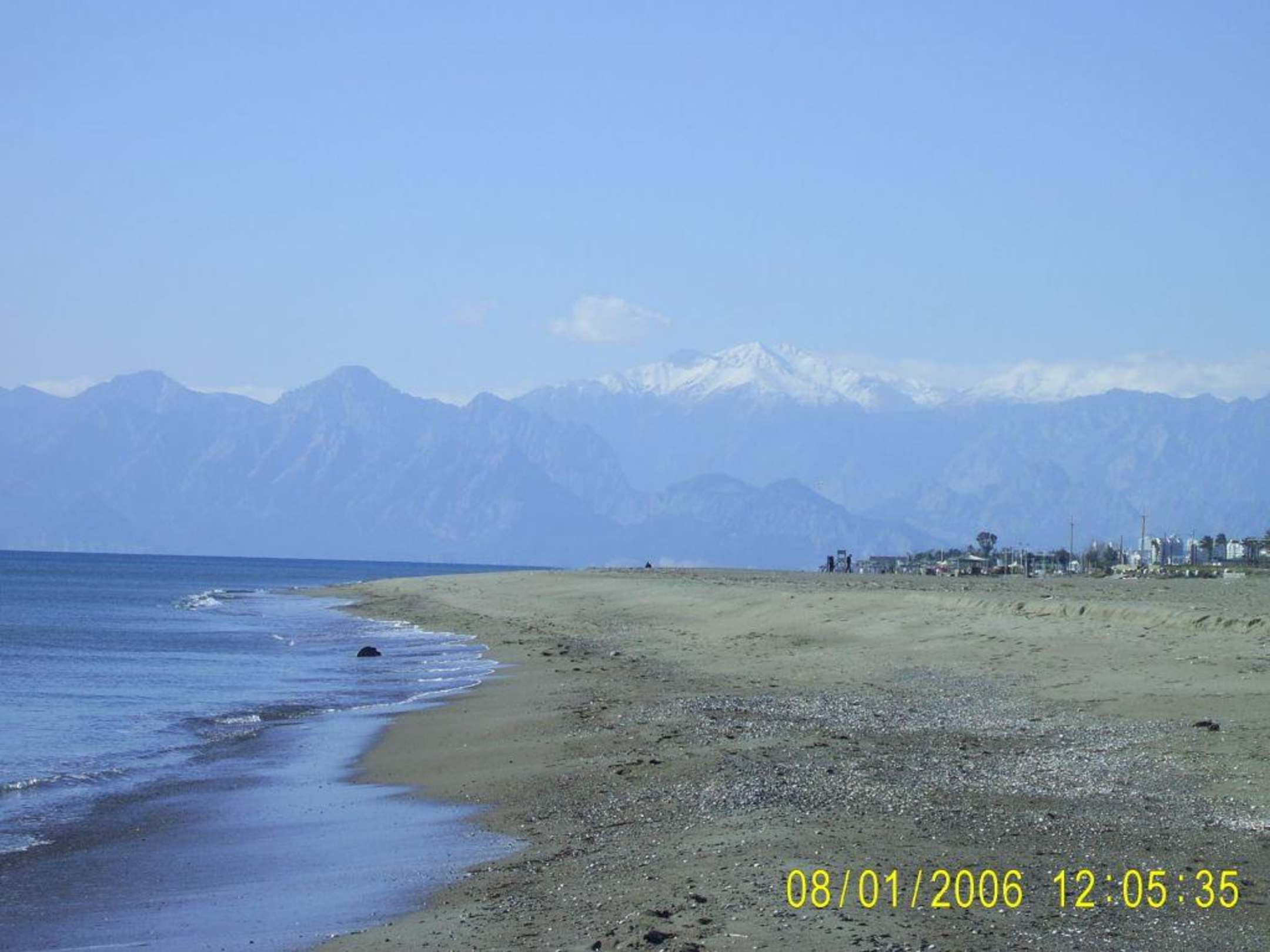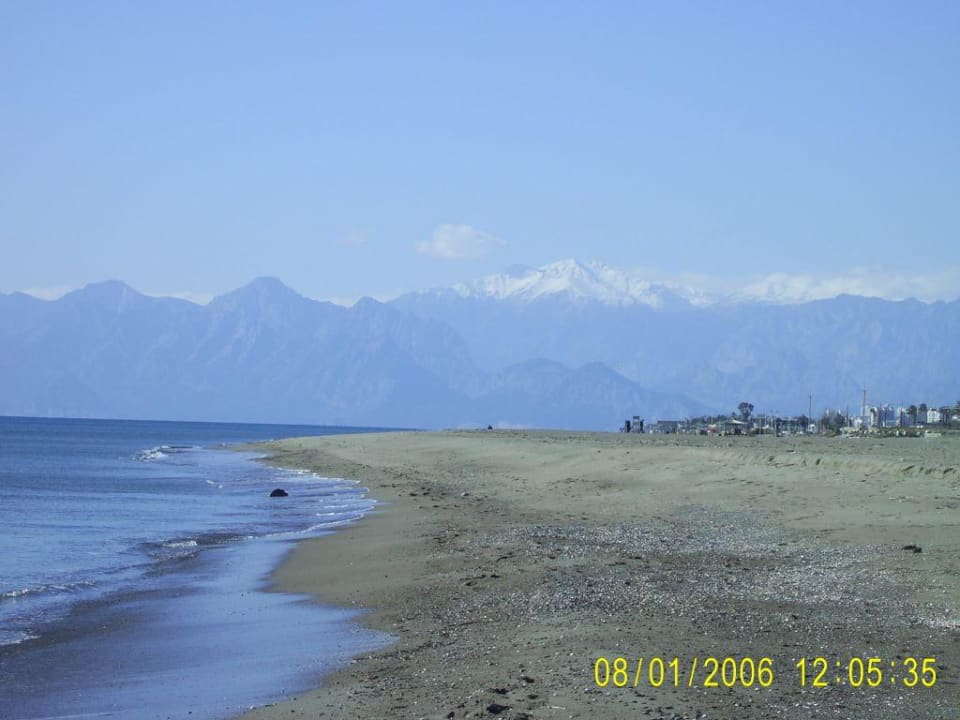 Blick vom Strand auf das Taurus Gebirge mit Schneemütze