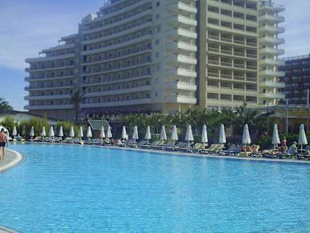 Einer der Pools mit Hotel im Hintergrund