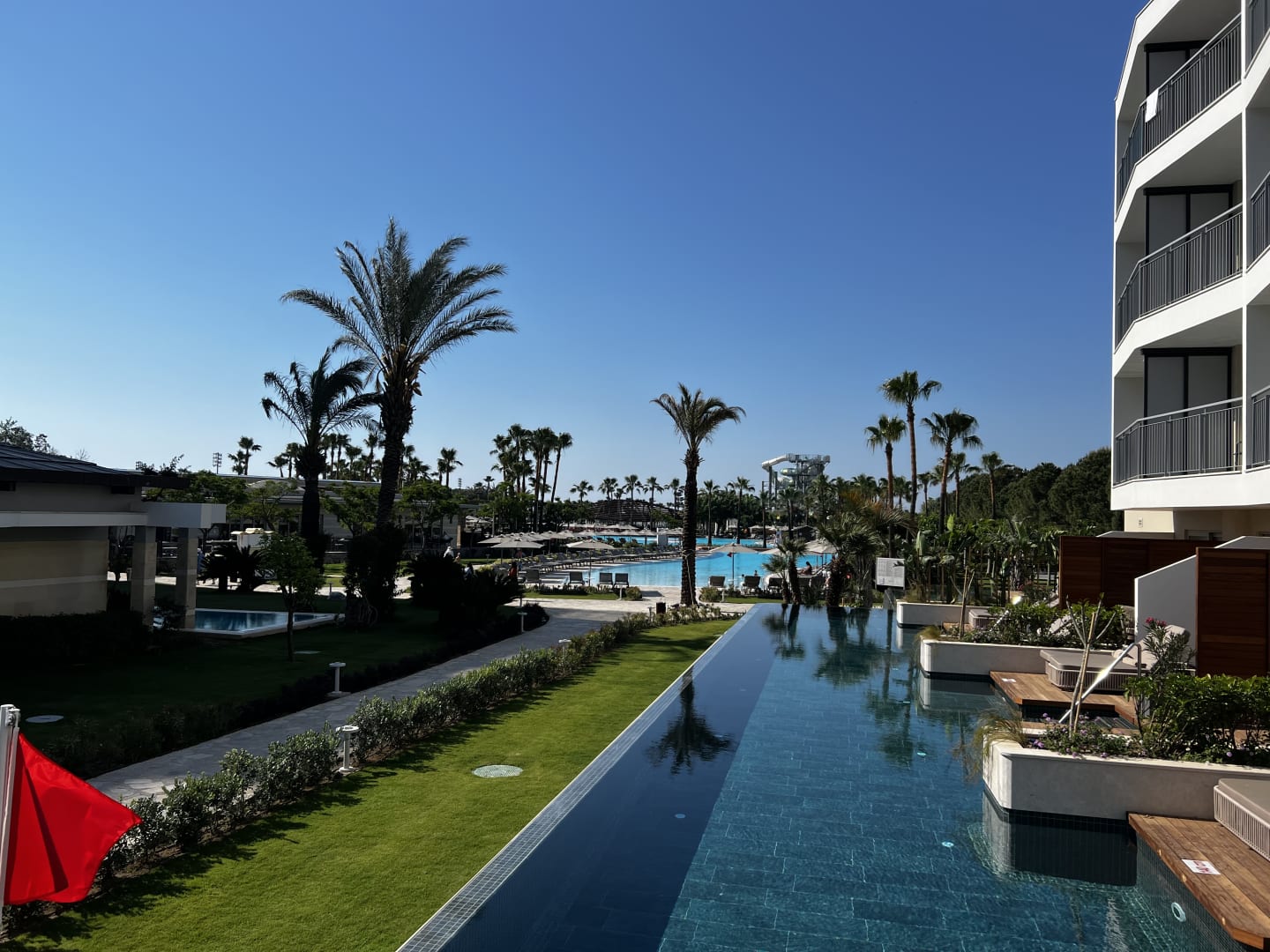 Neu konzipierte Gartenanlage, ein Pool direkt vom Zimmer aus erreichend.