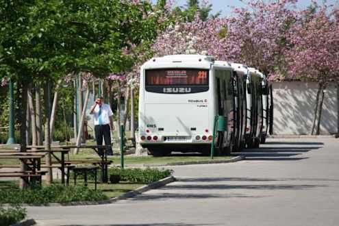 Hotel eigene Busse brachten uns vom Hotel nach Antalya und zurück