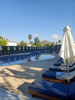 Familienpool am Morgen gegen 9 Uhr - es gibt noch freie Liegen.
