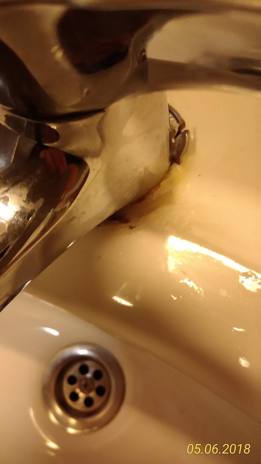 Wasserhan mit Silikon befestigt