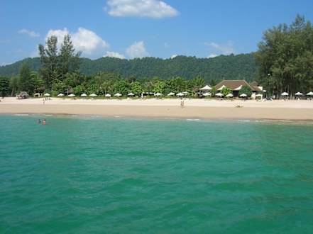 Blick zum Strand und Restaurant des Layana