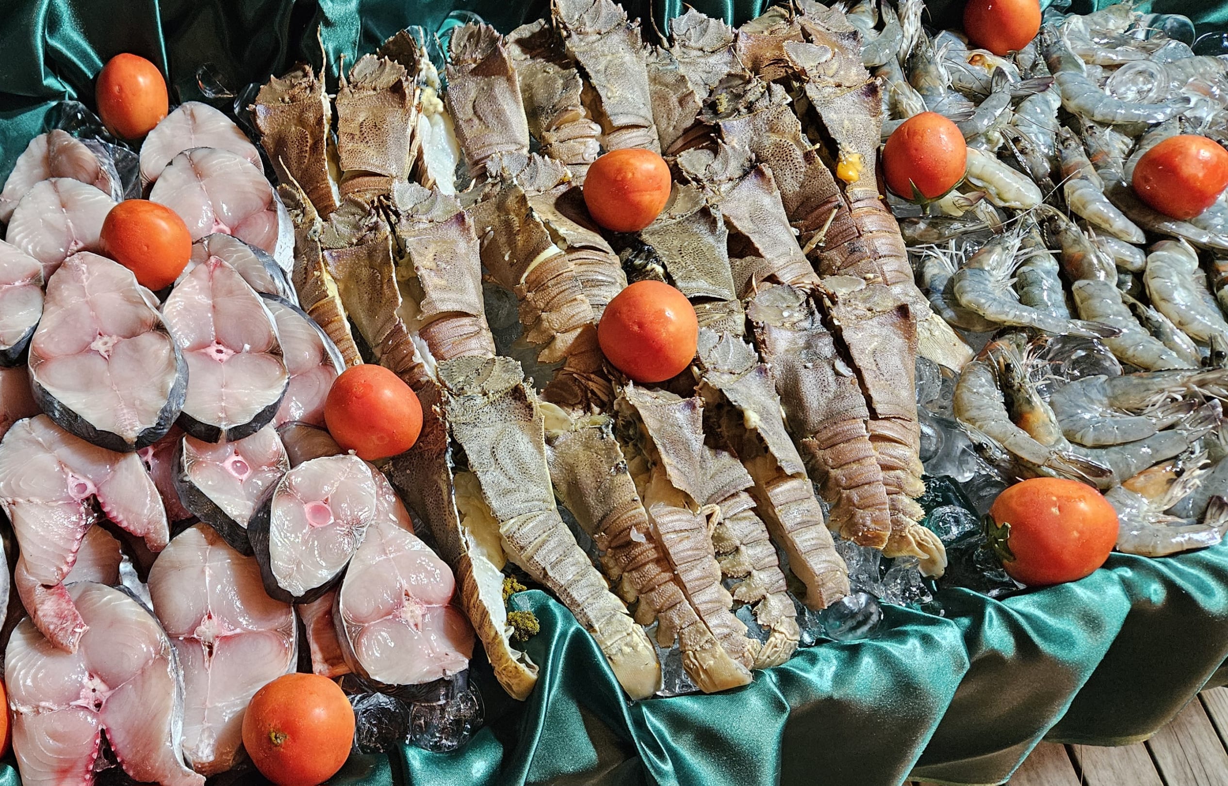 Rocklobster, Shrimps und Makrele werden am BBQ frisch gegrillt