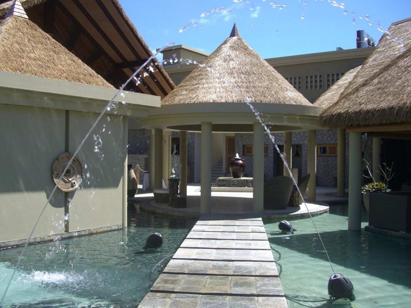 oder zu Bar durch das Wasserspiel.